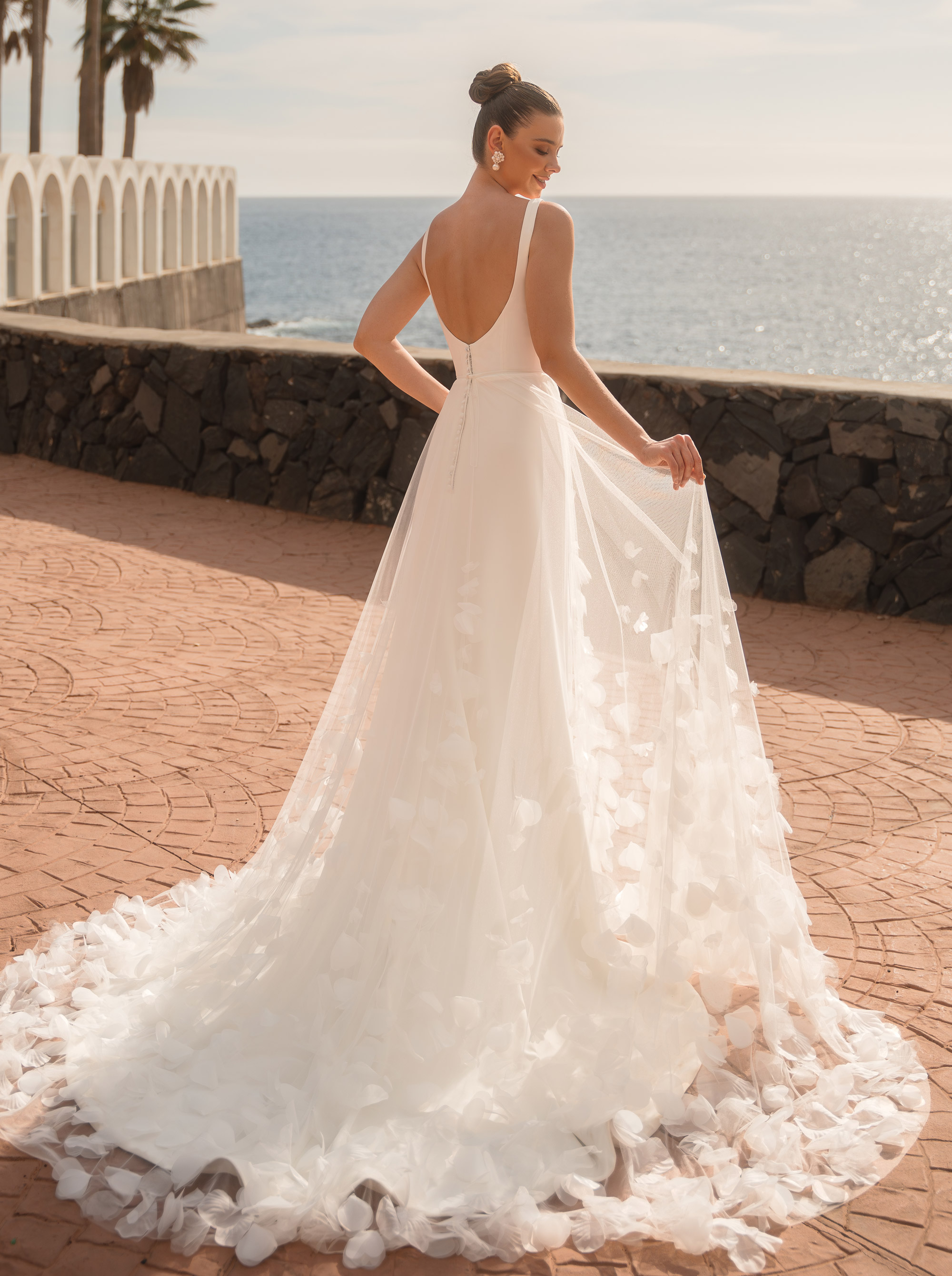 Bridal Mix & Match Kollektion steht für Individualität, Leichtigkeit und moderne Eleganz. Statt eines klassischen Kleides wählst du einzelne Pieces, die du ganz nach deinem Stil kombinieren kannst – von zarten Spitzen-Tops über schlichte, fließende Röcke bis hin zu modernen Schnitten mit klaren Linien.